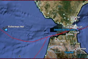 Depuis ce soir par contre c'est beaucoup moins paisible! En entrant dans le goulet formé par l’Espagne et le Maroc, la concentration du trafic maritime vers Gibraltar est impressionnante.
