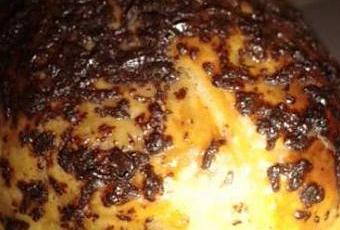 Dorer au j'aune d'œuf, décorer de râpures de chocolat noir et enfourner ŕ 190° pendant 15 minutes, jusqu'ŕ ce que les friands soient bien dorés.