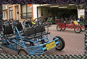 Quand vous voyez une côte, vous viendrait-il à l'idée d'aller louer un vélo de 20 bons kilos ? Non ? Et pourtant, si vous allez à la côte belge, ce serait dommage de ne pas faire un peu de cuistax sur la digue. Par rapport à la bête bicyclette, ce que l'engin a gagné en convivialité (il en existe jusqu'à une douzaine de places, dont chacune possède une large assise et un dossier rembourré), il le paie en poids (ça reste des tubes d'acier soudés, avec des directions et des chaînes qui manquent parfois un peu d'huile). Evidemment, vous pouvez oublier les vitesses. Et même la vitesse tout court, ce qui n'est pas plus mal vu que ce type d'engin n'est souvent pas beaucoup plus équipé de frein que de dérailleur, d'éclairage ou de rétroviseur. Je plains les malheureux qui ont dû faire un constat à l'amiable après une collision avec un tel engin (même contre un Hummer, je ne sais pas lequel des deux véhicules ressortirait le plus endommagé). Nom et permis du conducteur : lequel, quand il y a 3 volants et 8 pédaliers ? Numéro d'assurance ?? Marque et modèle du véhicule ??? Plaque d'immatriculation ???? Sans parler du dessin des véhicules dans le petit rectangle... En tout cas, de Knokke le Zoute à La Panne, le Belge n'a pas attendu le Vélib pour rouler écolo, avec des machines fabriquées