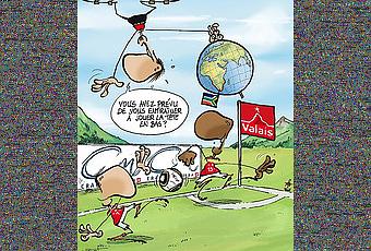 Cliquez sur l'image! Le dessin de François Maret, réalisé pour la Marque Valais, est plutôt chouette, non? Et prétexte à rappeler les prochains moments forts avec l'équipe nationale de foot: dimanche 30 mai, entraînement public des joueurs suisses à 10 h au stade de Lens, présence du fan's blub de la Nati; dès 11 h ce jour-là, babyfoot humain près du café des Amis (place des chèvres). Mardi 1er juin, match amical Costa Rica - Nati au stade de Tourbillon à Sion. Magazine Info Locale