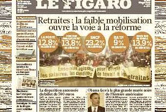 Vendredi, le Figaro relayait les propos de l'Elysée: les manifestations de la veille ont été modestes, la grève aurait été peu suivie. La tactique gouvernementale serait validée. La une du journal semble plus que jamais se concocter à l'Elysée : «la faible mobilisation ouvre la voie à la réforme». Raymond Soubie confie que «le débat a fait du bien dans le pays.» Quel débat ? Le même conseiller explique d'ailleurs, en off cette fois-ci, que la communication «au compte-gouttes » du gouvernement a permis de «mithridatiser» les Français.