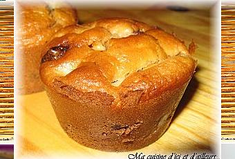 le lait. Fouettez jusqu'à l'obtention d'une pâte lisse.Concassez grossièrement le chocolat puis ajoutez-le à la préparation avec les dés de poire. Mélangez.Remplissez les moules à muffins au 2/3 de leur hauteur puis enfournez-les pour 25 minutes à 180°.Bon appétit !!!!