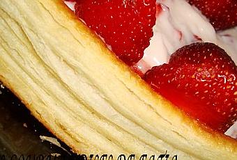 Pour changer des tartes aux fraises avec de la pate sablé ou brisé, voici une délicieuse recette à base de pate feuilletée, crème patisière et quartiers de fraises.