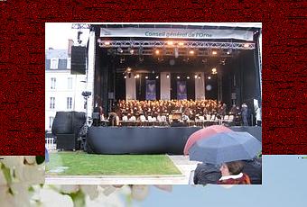 Pourquoi donc ne pas avoir prévu des moyens techniques à la hauteur de l'événement? La pluie aurait-elle, en nos contrées, un caractère aussi exceptionnel qu'on voudrait bien nous le laisser penser? Des musiciens et des spectateurs exposés aux intempéries, est-ce, tout de même acceptable d'être accueilli de pareille manière par le conseil général de l'Orne? Une choriste pas satisfaite du tout...