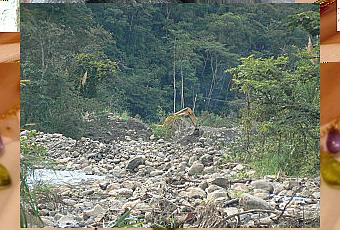 Ils travaillent de jour comme de nuit. Imaginez: la nuit resplendit, les étoiles s'affichent en 3D dans le ciel, vous comptez les lucioles et les vers luisants dans les arbres, de majestueuses montagnes se dressent devant vous et les doux sons des insectes et de la rivière résonnent à vos oreilles, quand soudain les mineurs commencent à travailler. Des bruits de marteaux piqueurs géants (les broyeurs de pierres) recouvrent ceux des animaux, des lumières inquiétantes réveillent la forêt. Je ne m'y fais pas, je suis triste à chaque fois.