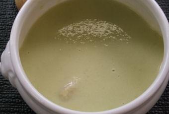 4- Passer le velouté au mixer et ensuite au chinois afin d’éliminer tous les filaments des asperges. Réserver.