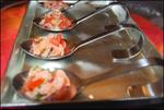 - Mélanger la vinaigrette à la préparation et disposez dans des cuillères.
