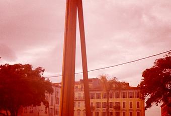 La sculpture est un don de l'artiste Bernar Venet pour le 150 ème anniversaire du rattachement du Comté de Nice à la France. Forcément, ça se fête, du coup on rajoute une nouvelle oeuvre d'art au paysage urbain...
