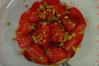 200gr de fraises style: "gariguette"un peu de gelée de groseille pour le nappagequelques pistaches écraser pour la déco