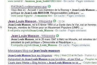 Une recherche « Jean-Louis Masson » sur Google fait apparaître la vidéo de l’interview en 1ère place ainsi que de nombreux autres liens aux titres peu flatteurs, alors que cette vidéo était publiée sur le blog RMC à 18h10 seulement.