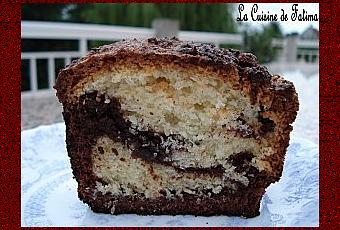 - Versez dans un moule à cake en alternant avec les deux pâtes.