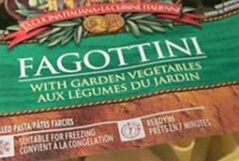 Ce qu'il y a de sympa, quand tu vis dans un pays officiellement bilingue comme le Canada, c'est que parfois, tu tombes sur des traductions approximatives, et parfois, tu frôles carrément l'incident diplomatique, faute de maitriser la deuxième langue du pays. Mention spéciale pour la marque "Le Choix du Président", avec ses pâtes "Fagottini". En anglais, faggot signifie tapette, tarlouze, tante... un rapport avec les légumes du jardin?