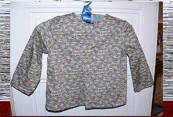 Voici la première pièce du petit ensemble confectionné pour Hugo : la chemisette. Elle est sans col et avec un pli creux devant.