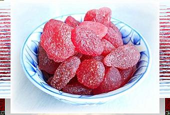 Une amie m'a offert des fraises séchées ou devrai-je dire des fraises confites... parce qu'avec mes 8 kg de fraises, j'ai essayé d'en faire des homemade, mais le résultat n'est pas tout à fait identique, jugez par vous mêmes!!!