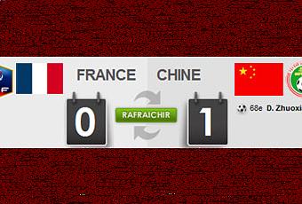 Quelle surprise ! Vendredi 4 juin, la Chine a battu la France en match amical 1-0. A J-6, la défaite est inquiétante pour l'équipe des bleus, d’autant que pour cette rencontre elle n’a été confrontée qu’à l’équipe bis de Chine.C’est le joueur Deng Zhuoxiang qui ouvre le score à la 68ème minute grâce à un tir flottant du gauche. Belle performance aussi du gardien chinois C. Zeng qui a fait un très gros match en assurant des arrêts décisifs. Bravo à la Chine !