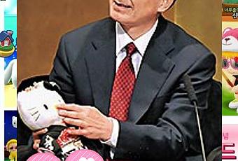 Tout mène à Hello kitty même en politique ! Durant son voyage au Japon ces derniers jours, le Premier ministre Chinois Wen Jiabao a rencontré Tsuji Shintaro le fondateur de Sanrio qui lui a offert une peluche Hello kitty en kimono.Il faut savoir que grand nombre de produits officiel Hello kitty qui se vendent au Japon sont fabriqués en Chine ,ce qui peut paraitre étonnant quand on sait le nombre de contrefaçons Sanrio qui y sont également fabriqués.