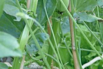 Côté potager fleuri tout d'abord, nous désherbons tout en nous régalant avec les fraises que nous récoltons 2 fois par semaine ; déjŕ nos premičres fčves se forment...