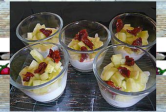Déposer ce mélange au fond de chaque verre puis ajouter le concombre et décorer avec des morceaux de tomates