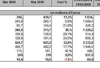Trois types de médias affichent une forte progression des recettes brutes en mai 2010 versus mai 2009 : la radio (+26%), la télévision (+22,6%) et la presse quotidienne nationale (+21,8%).