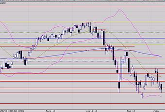 Cette fenêtre menacée par le courant vendeur qui domine actuellement le marché aura certainement beaucoup de mal à résister à ce courant.Son invalidation traduirait une dégradation particulière du marché et le plongerait vraisemblablement dans une longue tendance baissière (ce que semble confirmer le graphe des bougies hebdomadaires à quelques séances de la clôture)
