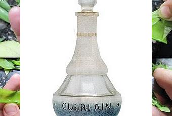 Le clou de la vente : ce rare flacon Guerlain première période autour de 1870, rien que ça ! La gravure sur verre indique « Guerlain déposé » d'un côté, et de l'autre « rue de la Paix. 15. Paris ». Après la rue de Rivoli à Paris, le « 15 rue de la Paix », fut choisi en 1840 par Pierre-François-Pascal Guerlain, le fondateur de la marque, comme nouvelle adresse pour son enseigne. L'inscription « HP » sur la tranche du socle est la signature du maître verrier Pochet Ducourval, créateur du célèbre flacon aux abeilles de l'eau de Cologne impériale en 1853 . C'est la première fois que ce modèle est mis en ventes aux enchères à travers le monde ! Le prix de cette « bagatelle » est estimé entre 20 000 et 30 000 euros.