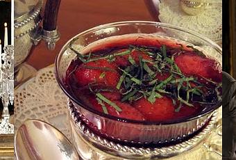 Ingrédients pour 4 personnes500 g de grosses fraises200 g de sucre50 cl de vin rouge de Cahors1 citron vert1 orange non traitée25 cl d'eau2 branches de menthe poivrée ou verte selon le goût1 bulbe de gingembre frais2 clous de girofle