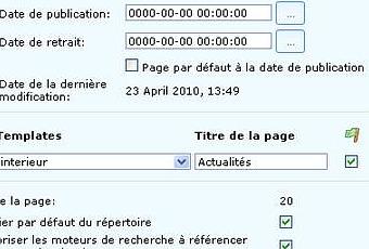 - Général : Les propriétés générales de la page, comme lors de la création d'une page