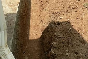When I left you we had a mountain of dirt in our yard. When I left for work, they had already filled most of he hole (necessary to remove all the roots) instead there was small trench to do the drain.