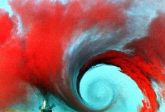 Visualisation du vortex engendré par un avion, au moyen d’une émission de fumée colorée depuis le sol.
