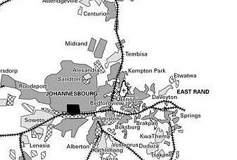 A Johannesburg, c'est davantage le proème des squatters et de l'unité de la métropole (difficultés pour unifier des éléments aussi différents que les riches banlieues blanches, les célèbres townships de Soweto, les zones industrielles et minières qui coupent la ville en deux... Voir la carte ci-dessous) qui se pose comme problématique majeure, mais aussi le dépeuplement du centre-ville, la criminalité, la formation de ghettos sur les marges du centre-ville. Voir les travaux de Philippe Gervais-Lambony et de Philippe Guillaume.