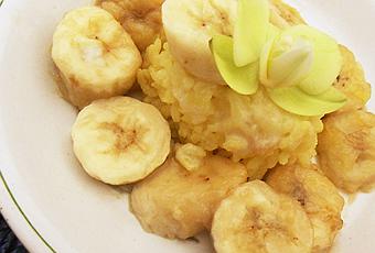J’ai refais chauffer un peu mon riz et j’ai déposé dessus ma confiture de banane.