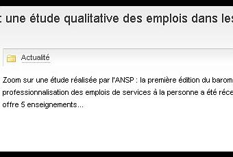 L’ANSP (l’Agence Nationale des Services à la Personne), fait le point en publiant la 1ère édition du baromètre de la qualité et de la professionnalisation des emplois de Services à la Personne et entend bien mesurer l’emploi en termes de qualité et de professionnalisation.