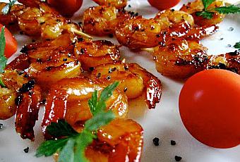 Brochettes de Gambas au Sirop de Poivre Noir et Sel Noir d'Hawaï