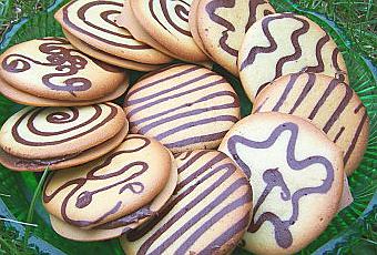 Y faire un tout petit trou à l'un des angles et déposez délicatement cette pâte sur les biscuits préalablement formés.