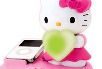 Une enceinte Hello Kitty pleine de charme… qui fera craquer toutes les utilisatrices, des plus jeunes aux mamans « fashion victims ». Pour l’utiliser, rien de plus simple, connectez votre iPod ou baladeur MP3/MP4 sur le socle prévu à cet effet, Hello Kitty s’occupe du reste ! A 29,99 euros !