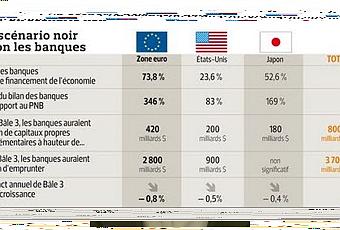 Voilà pourquoi tout changement est très douloureux. C'est aussi pourquoi les états divergent autant sur les solutions à cette question de la fragilité et de la régulation des banques. Il est sur que les fonds propres ont vraisemblablement connu un point bas et que les nouvelles règles vont les relever. Si c'est le cas il faudra restreindre les prêts ou bien lever des fonds ou bien les deux... Pour les économies qui dépendent beaucoup des banques ce sera un nouvel obstacle sur le chemin de la reprise. Par ailleurs la confiance n'exclut pas de vérifier que personne se méprend! Aux US Geithner a déjà fait des stress tests dont semble-t-il les européens ne veulent pas... Il faut donc constater que ce sera très difficile, quand vous financez à 75 % l'économie d'un pays et que l'état est votre régulateur, même avec de la bonne volonté ce régulateur danse dans la gueule du crocodile. Cela s'appelle la capture du régulateur par les banques...