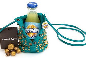 Le topo ? Un petit sac a été dessinée sur mesure par Gabriela Cortese, la créatrice d’Antik Batik pour habiller la petite bouteille ronde d'Orangina Light pour l'été ... Ce qui est génial c'est qu'après s'être désaltéré on peut garder le petit sac pour y ranger ses clefs, porte-monnaie, portable, en somme ce micro sac contient l’essentiel pour sortir légère. Déclinée en trois couleurs : turquoise, fushia et noir, elle est rebrodée de sequins dorés qui rappellent très bien le coté ethnique chic d'Antik Batik.Deux médaillons, Orangina Light et Antik Batik, ajoutent une griffe à ce sac inédit, brodé à la main et édité en série limitée. Une précieuse garantie de ne pas le voir porté par tout le monde ! Alors si il vous plait courrez vite à la grande épicerie de Paris ou il est vendu en exclusivité (sur leur site internet ça marche aussi : http://www.lagrandeepicerie.fr )