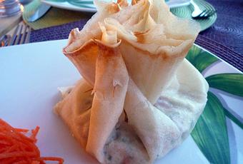 Voici une petite entrée idéale en toute saison. Garnies de saumon fumé, de mozzarella et d’herbes fraîches (ciboulette et basilic), accompagnées d’une petite salade verte ou de carottes râpées, ces petites aumônières seront bien appréciées pour commencer le repas.