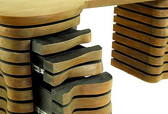 Après les magnifiques meubles-sculptures de Wendell Castle, place à une autre pièce d’ébénisterie de choix : le bureau « Wave » du designer et ébéniste Géorgien Robert Brou. L’artiste a conçu ce bureau par superposition de strates de bois ondulantes, d’où le nom « wave » (vague). Les tiroirs épousent intelligemment les différentes couches de bois, à raison de 1, 2, 3 ou 4 couches. Chaque couche mesure une dizaine de centimètres. Une très jolie réalisation.