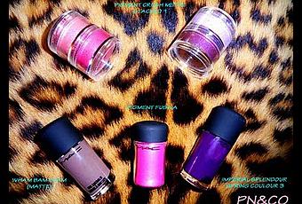 In doing my weekly round to my friendly and very good team of Mac, I could not help but like an addiction, to bring some products of the new collection release early March "Spring Color Forecast" I have already cracked on varnish and pigments batch of 4. I also took a varnish that is in the current collection as well as the pot pigment "fuchsia"The varnish is easy to apply each time I put three layers without top coat. The violet is very creamy and silky, cons by the mole is matte and leaves no trace once the brush to dry When the pigments are very easy to work, I made one or two tests (no photos I am horrible, I slept not much: ()and it was pretty. I try to do soon, promise!