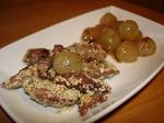 Déglacez aussitôt la poele avec le vinaigre de framboise en grattant bien tous les sucs de cuisson, puis ajoutez une belle noix de beurre et poelez les raisins blancs pelés quelques minutes.