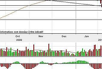 Vous pouvez constater sur le graphique, que le titre a repris sa tendance baissière indiquant au passage la force du mouvement en cours.
