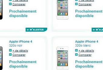Chez Bouygues Telecom, l' iPhone 4 vient d'apparaitre dans la liste des modèles en renouvellement mais en "Prochainement disponible"