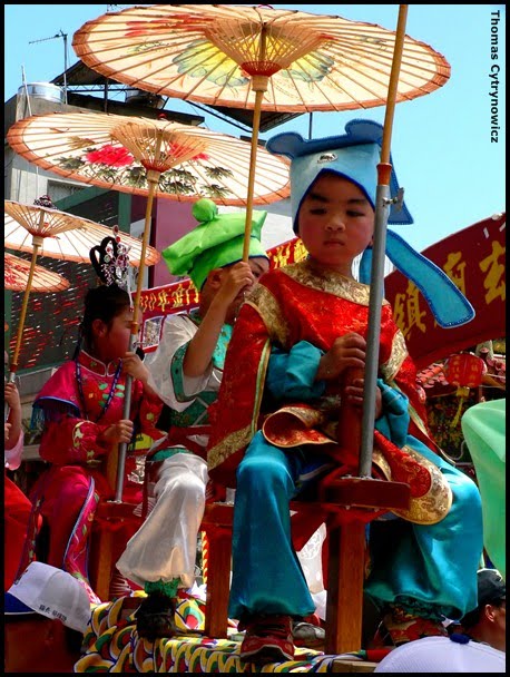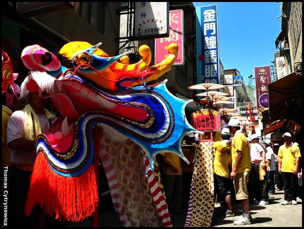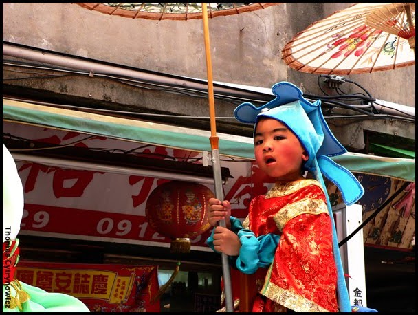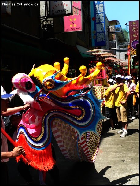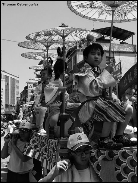 En tête de file, le dragon symbolique.Petite difficulté pour ces charmants enfants, aller aux toilettes.