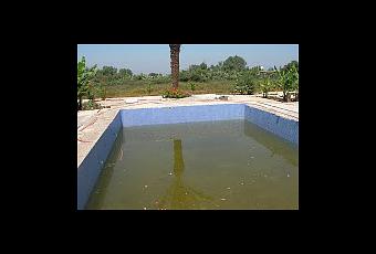 Durant l'hiver, l'eau a vilainement stagné dans la piscine du Jardin aux Etoiles (à gauche), l'installation de pompage n'ayant pas été réalisée dans les délais prévus (voir La piscine bleu ciel d'Azzedine - La plaie des retards marocains). Il a fallu agir rapidement, afin d'assainir le plan d'eau, devenu un refuge idéal pour les grenouilles ! Les tétards commençaient à poindre leur nez...