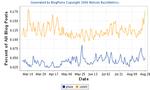 A propos de pluie et de beau temps. Je me demandais ce matin si tout le monde ne parlait que de cela sur les blogs ? Une petite recherche "Pluie" vs "Soleil" sur BlogPulse donne ces résultats amusants.