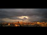 Montmartre et les toits du XVIIIème arrondissement de Paris hier soir 9 juillet à quelques minutes du coucher du soleil. Alors que l'orage s'éloigne, le soleil perce entre deux nuages noirs.