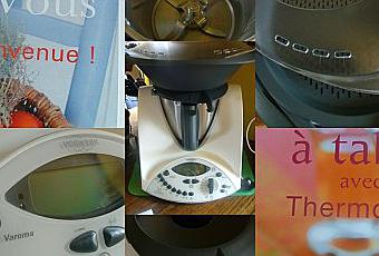 Mais cela n'a pas entaché ma bonne humeur, j'ai passé deux jours à potasser le magazine et le livre de recettes qui accompagnaient mon nouveau bébé, à voyager sur le net à la découverte de recettes adaptées à ma nouvelle machine... Car, il faut l'avouer, il faut quand même un temps d'apprentissage avant de l'apprivoiser. Les deux premiers essais, même avec des recettes déjà testées et approuvées, ne se sont pas vraiment bien déroulés (je vous en donnerais le résultat dans quelques jours). Donc, pour l'instant, je me "fais la main" sur des recettes sûres, des bases faciles et, depuis deux jours, on peut dire que je me régale ! Et que j'arrive même à régaler toute ma petite famille !! Que les lecteurs qui ne sont pas équipé de thermomix se rassurent ! Je ne vais pas maintenant ne publier que des recettes thermomixées. La preuve, je viens encore de craquer et de faire des emplettes à la librairie... et pas qu'un peu ! Regardez donc :