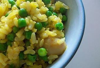 Une fois les petits pois cuits, ajoutez un fond de tasse d'eau chaude dans laquelle vous aurez dissolu le safran.