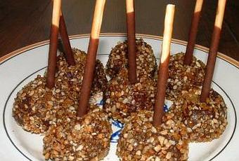 Plonger les sucettes de fruits une par une dans le chocolat fondu, puis dans les noisettes concassées et le cacao en poudre, les laisser refroidir sur un papier sulfurisé... et déguster quand vous voulez !